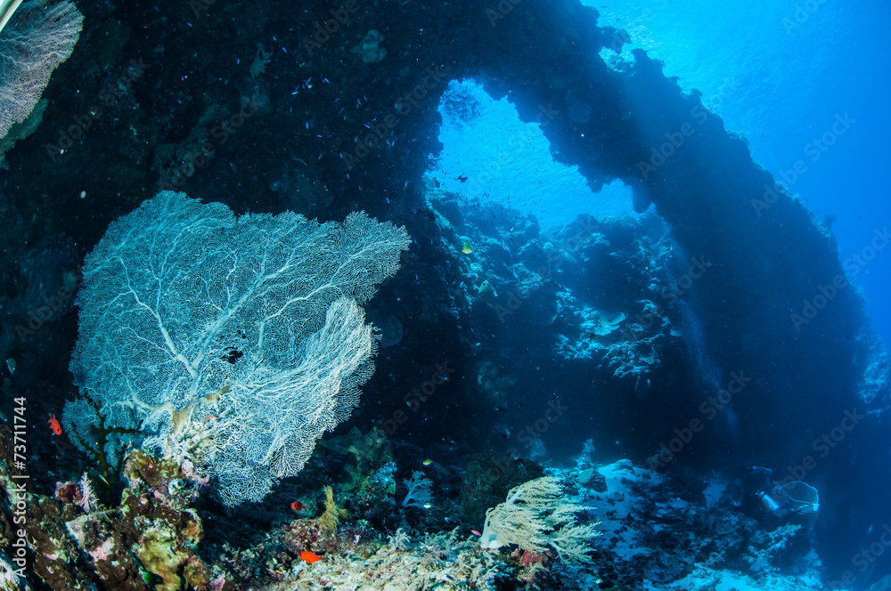 Samolepka Sea fan Annella mollis in Banda, Indonesia underwater