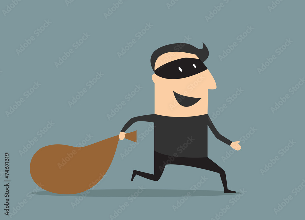 Samolepka Cartoon thief in mask with sack