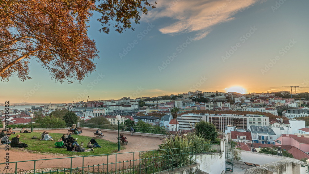Samolepka Panorama showing Jardim do Torel timelapse with views to the city center of Lisbon during sunset