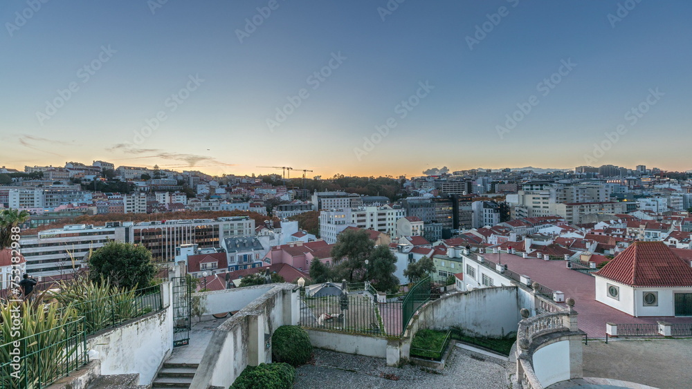 Samolepka Panorama showing Jardim do Torel day to night timelapse with views to the city center of Lisbon after sunset