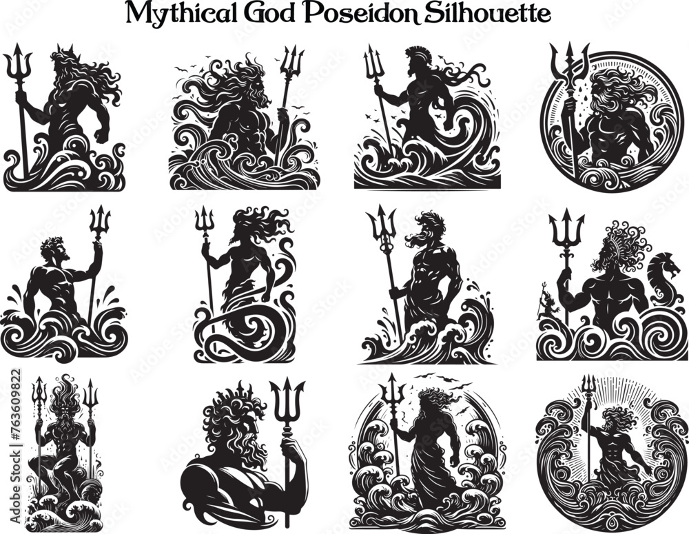 Samolepka Greek Mythic Sea God Poseidon Silhouette Vector Illustration Set