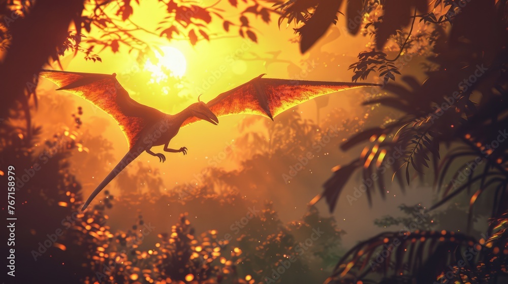 Samolepka AI-generated majestic dinosaurs in a prehistoric landscape