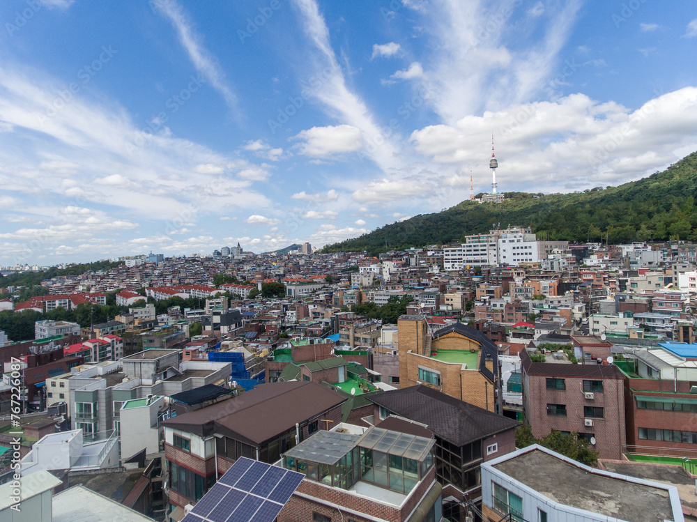 Samolepka Seoul Cityscape and Namsan Mountain Park in Background
