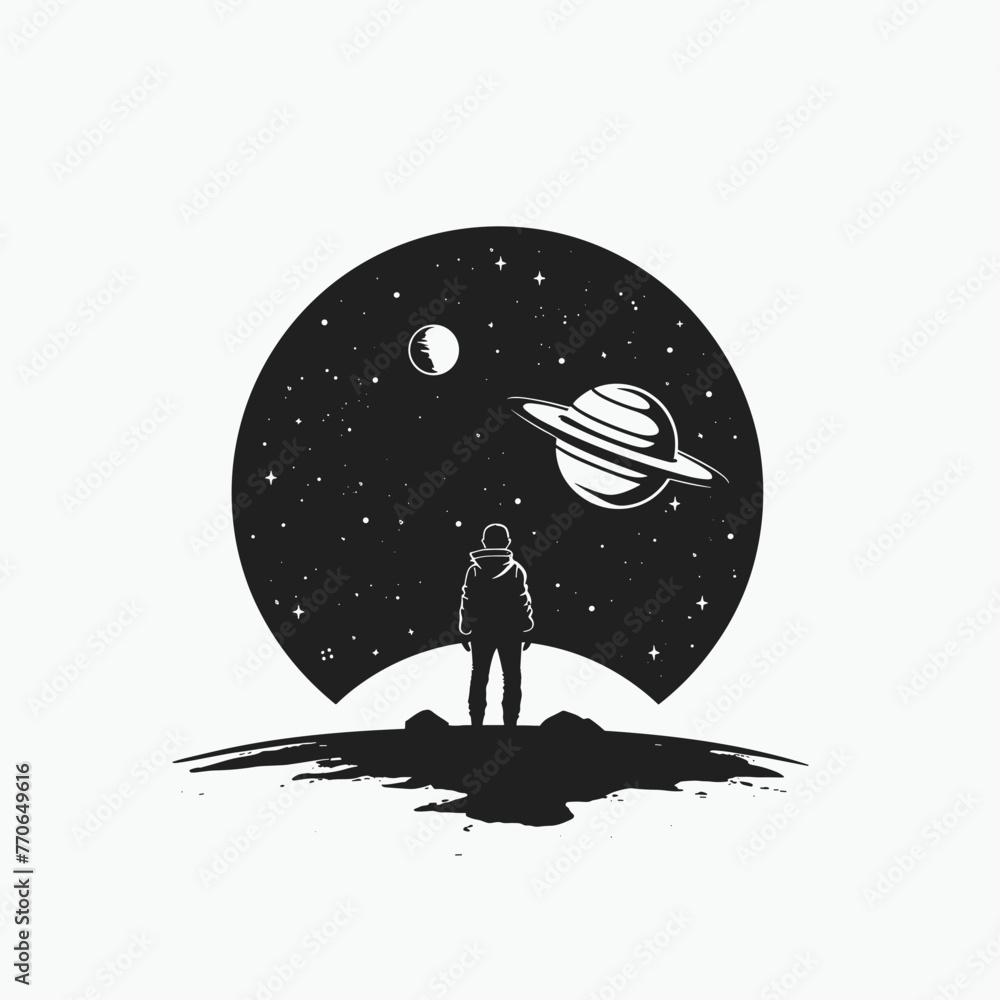Samolepka Person gazes at starry sky with planets.
