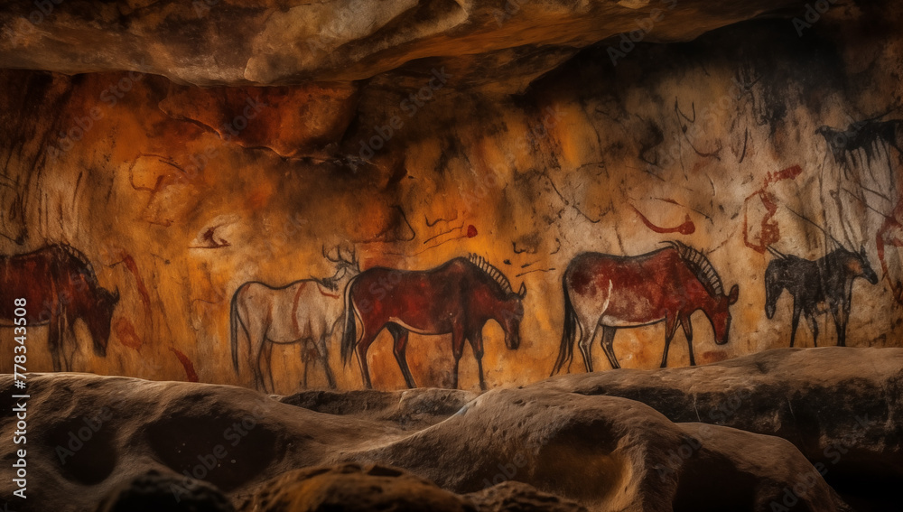 Samolepka Ancient cave mural portraying prehistoric wildlife