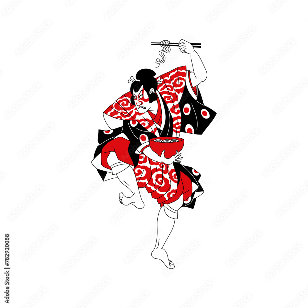 Samolepka kabuki, Samurai eating noodles, Japanese Ukiyoe style, vector illustration