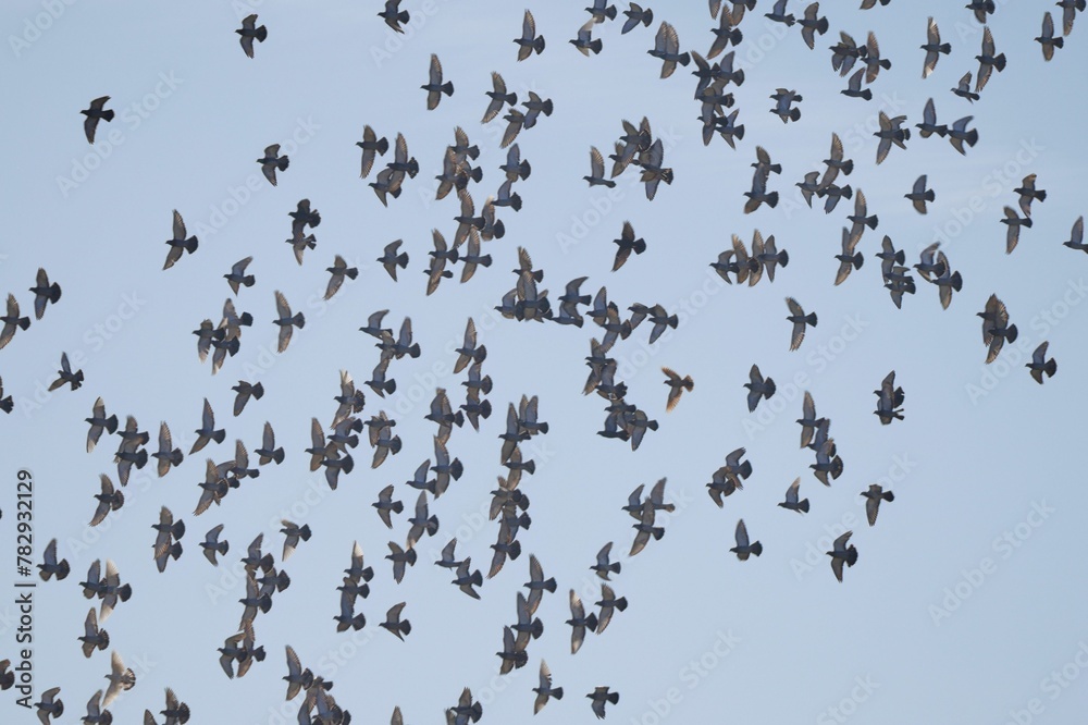 Samolepka Beautiful shot of a prey of birds flying in a sky