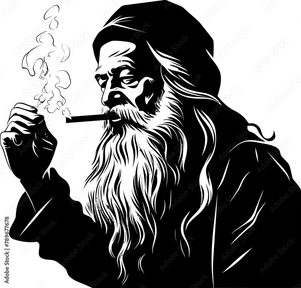 Samolepka Vintage Vapor Long Bearded Man Design Elder Emanation Asian Smoker Symbol
