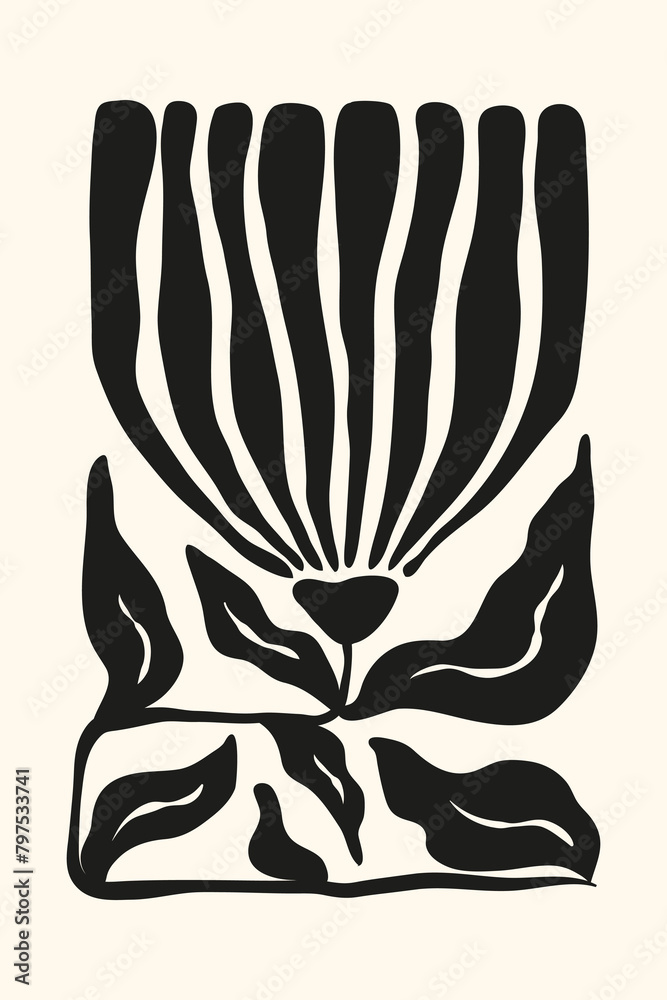 Samolepka Hand drawn minimal flower and wriggling leaves in black color in Matisse style