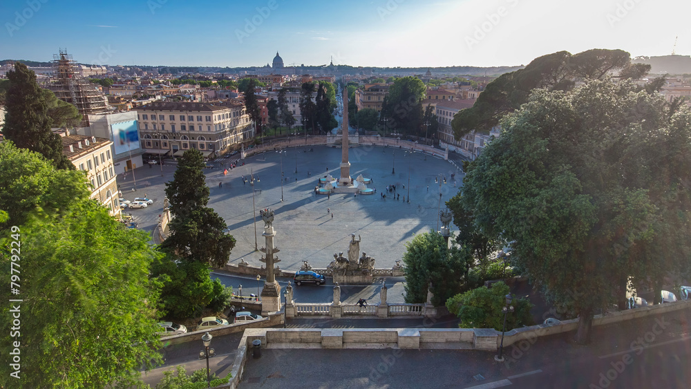 Samolepka Aerial view of the large urban square, the Piazza del Popolo timelapse, Rome at