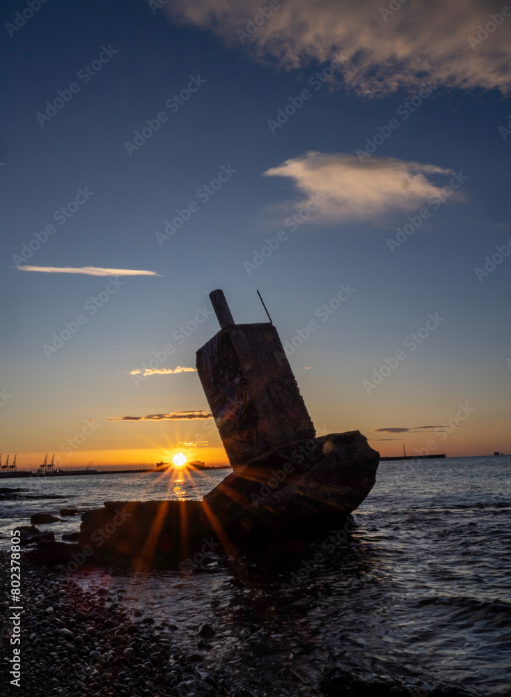 Obraz na plátně Sunrise on the beach of Puerto de Sagunto (Valencia-Spain)
