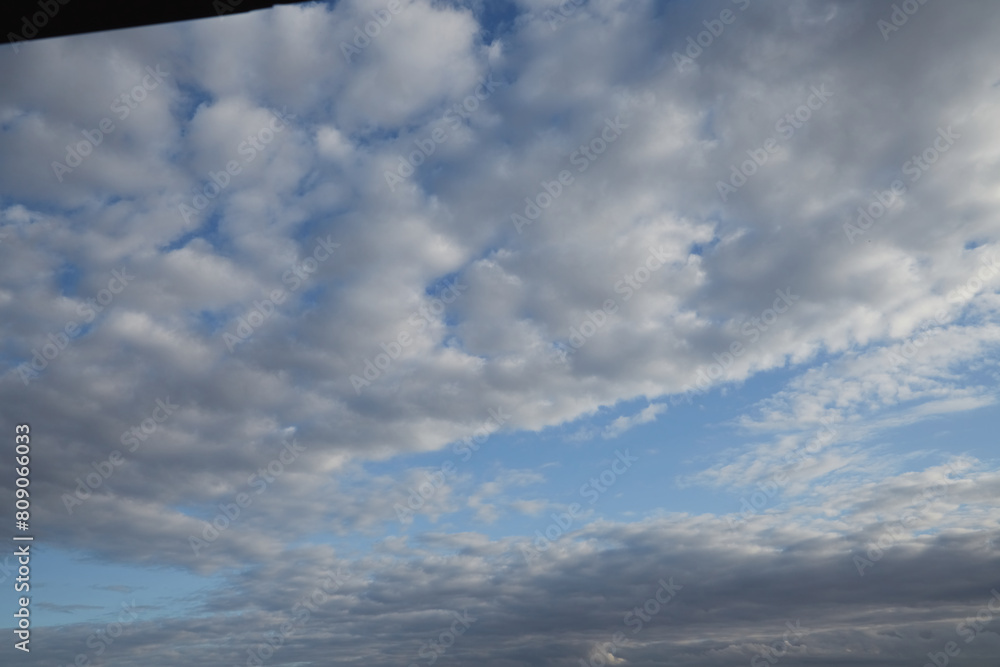 Samolepka Fluffy white and gray clouds on blue sky background. Copy space