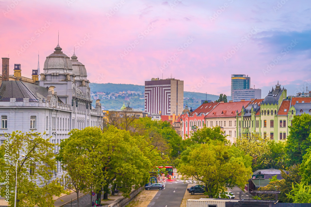 Samolepka Cityscape image of downtown Bratislava, capital city of Slovakia