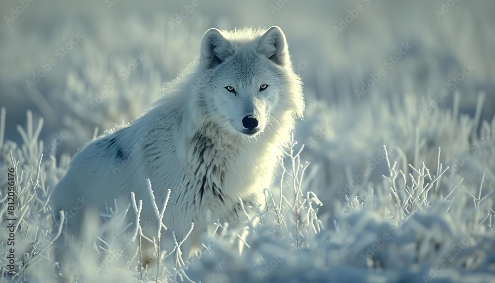 Samolepka An arctic wolf blending into its snowy surroundings, its white fur providing cam