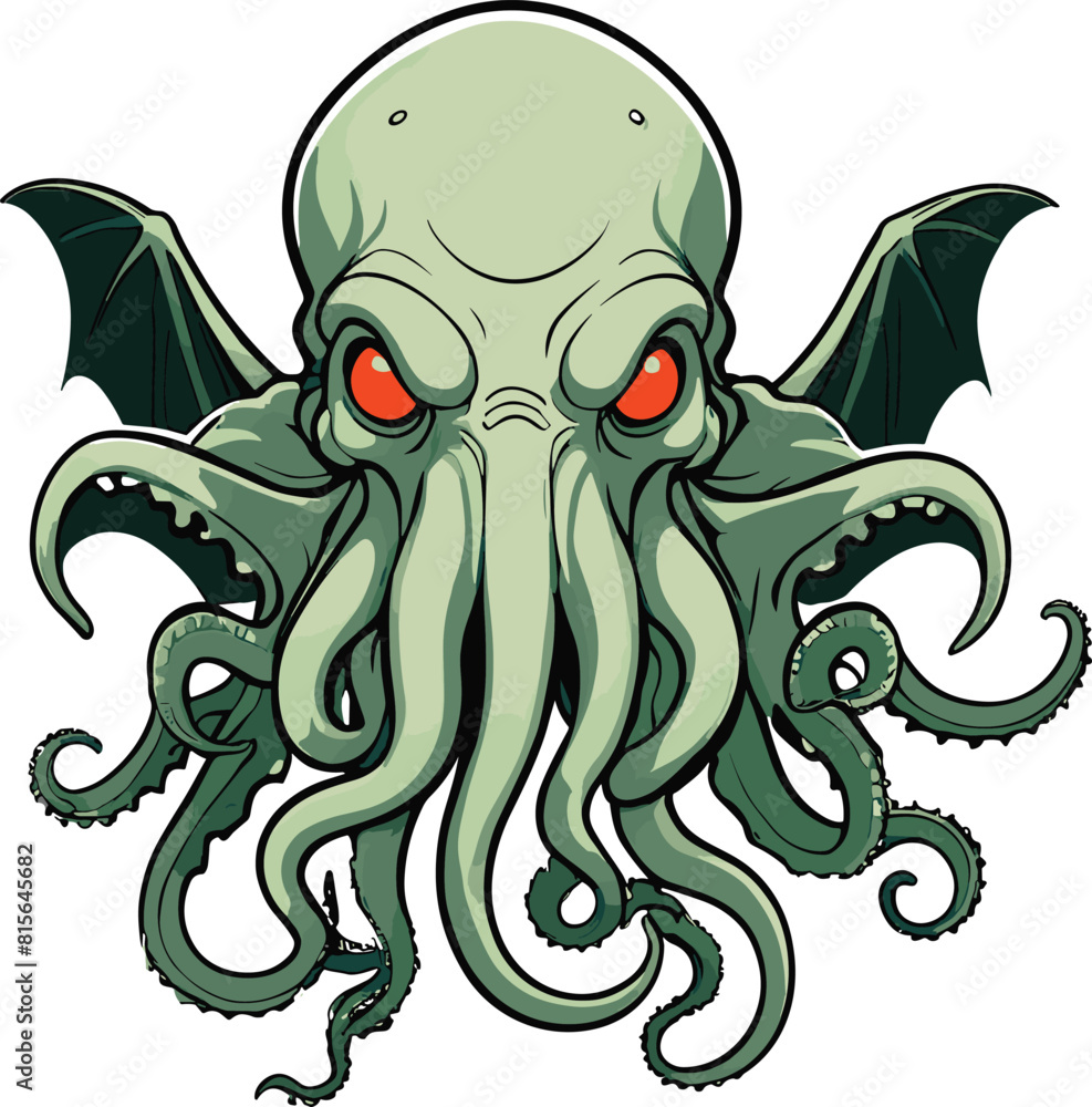 Samolepka Vector illustration of a mythical Cthulhu with red eyes against a white backgrou