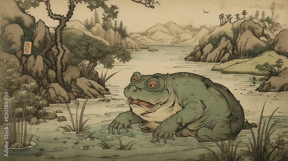 Samolepka Digital illustration of a traditional Japanese youkai supernatural entity in a f