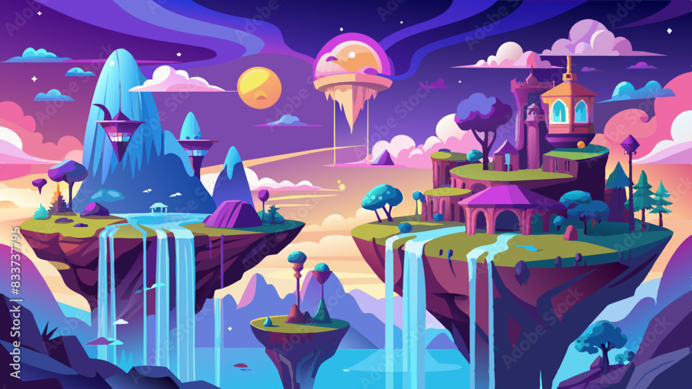 Samolepka Vivid dreamscapes with floating islands, waterfalls, and fantastical creatures