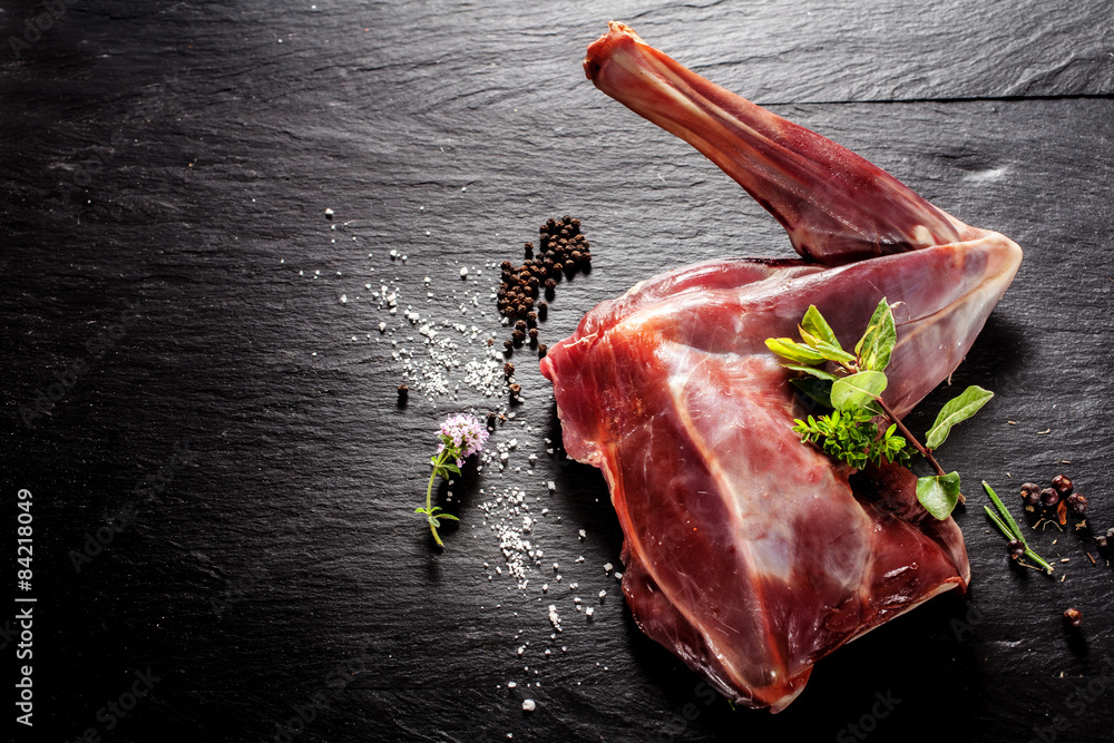Samolepka Raw Venison Haunch Seasoned with Herbs and Spices