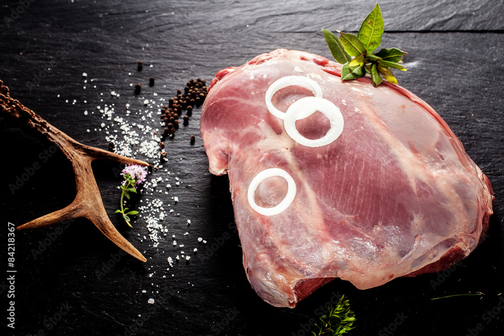 Samolepka Raw Venison Roast Seasoned with Herbs and Spices