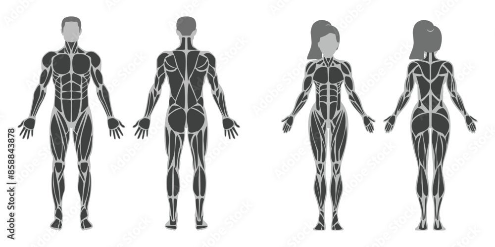 Samolepka Male and Female Muscular Anatomy Vector Illustration
