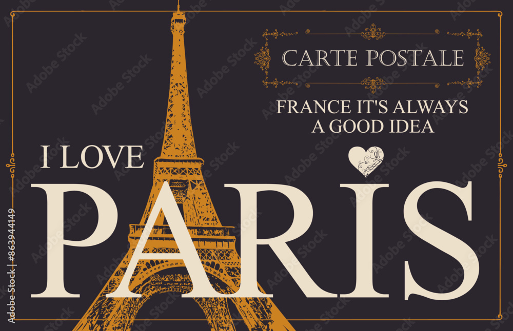 Samolepka Retro postcard with the famous french Eiffel tower in Paris, France