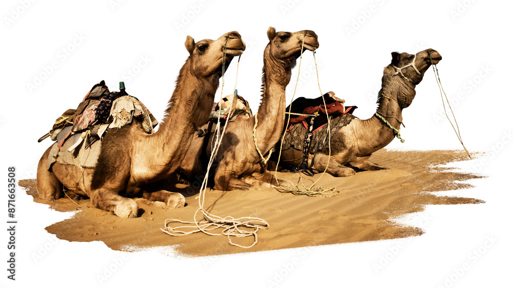 Samolepka PNG group of camels, collage element, transparent background