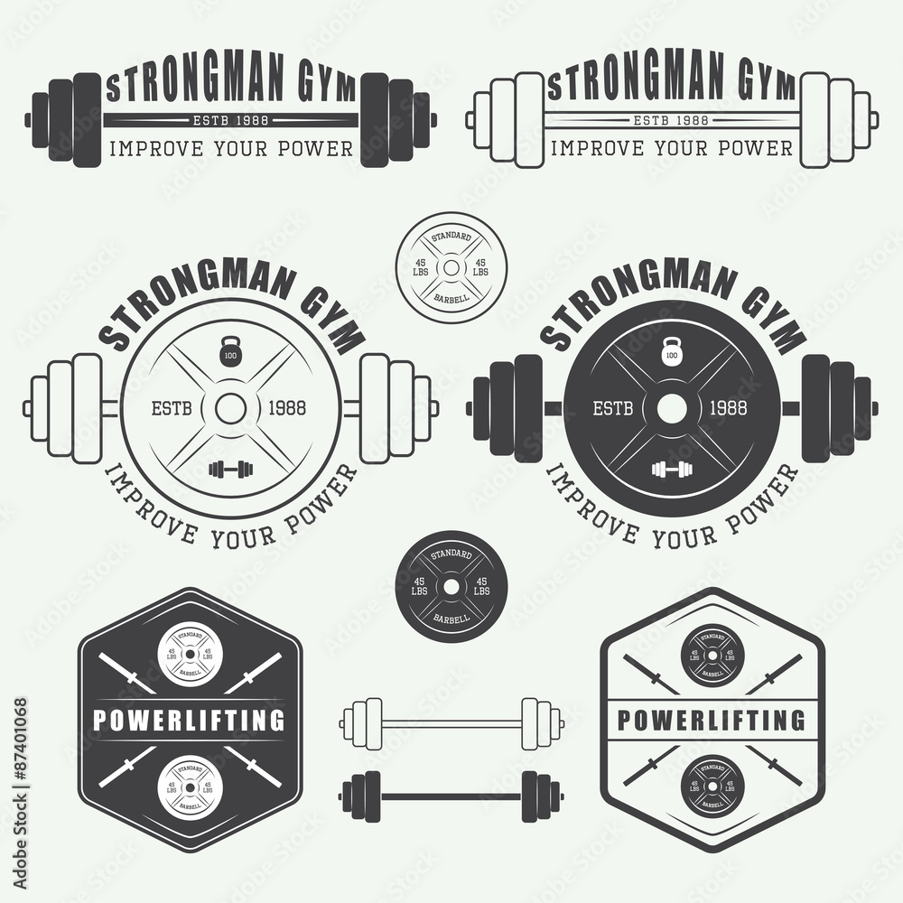 Samolepka Set of gym logo, labels,badges and elements in vintage style