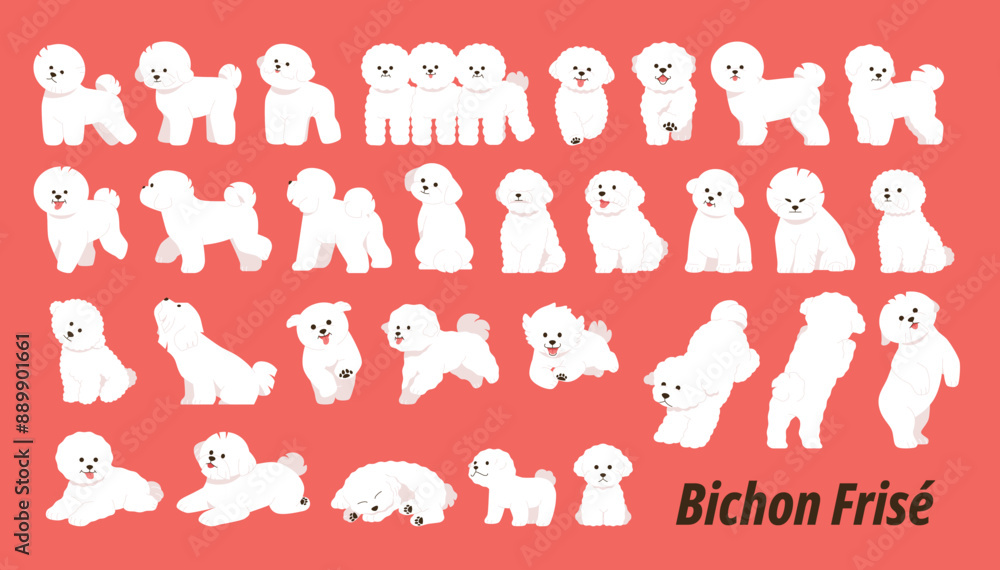 Samolepka Cute Bichon Frize. A collection of active and diverse movements.