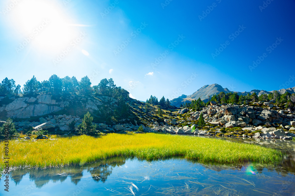 Samolepka Pyrenees Pessons peak and lakes in Andorra