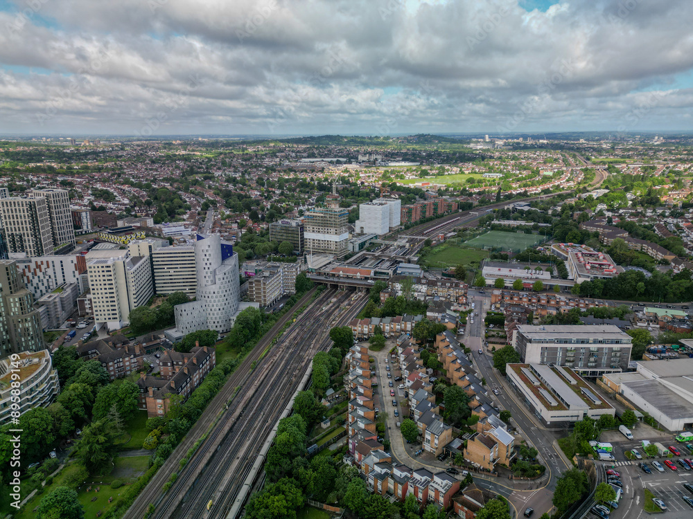 Samolepka Wembley Park Train Station Aerial view drone shot London UK