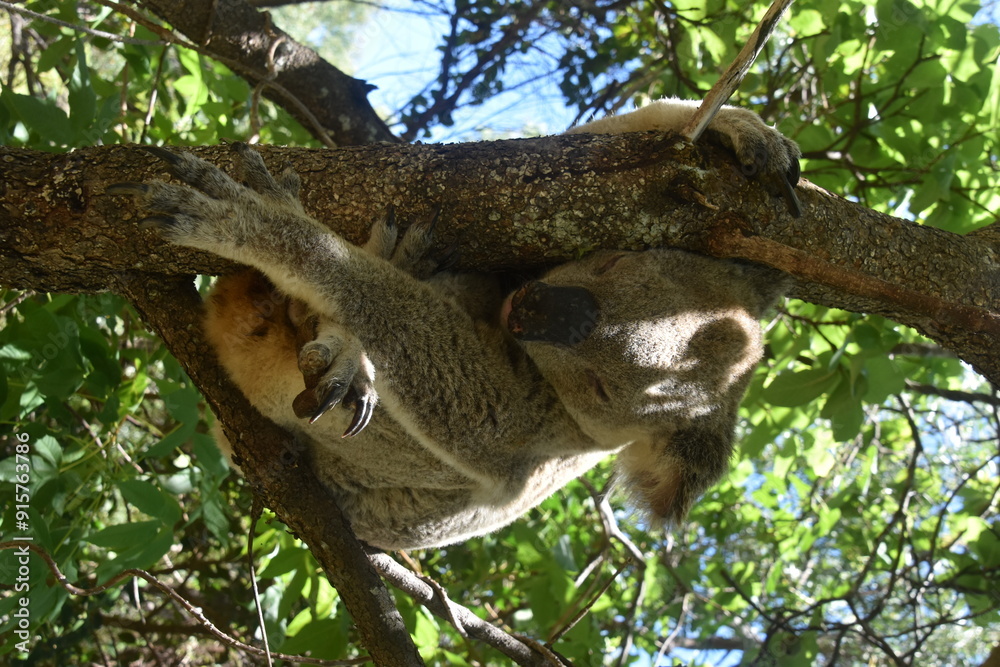 Samolepka An adorable cute and fluffy koala bear in the wild yawning, sleeping and winking