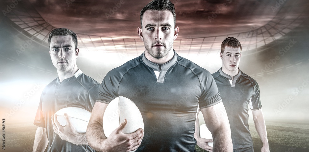 Samolepka Composite image of rugby player holding a rugby ball