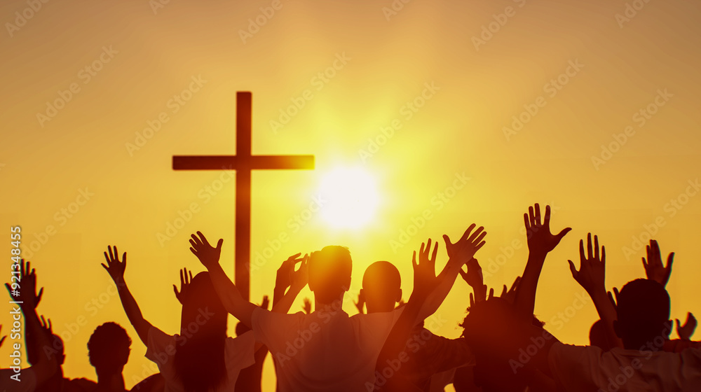 Samolepka the silhouette of a Christian cross with the image of a worship praying people h