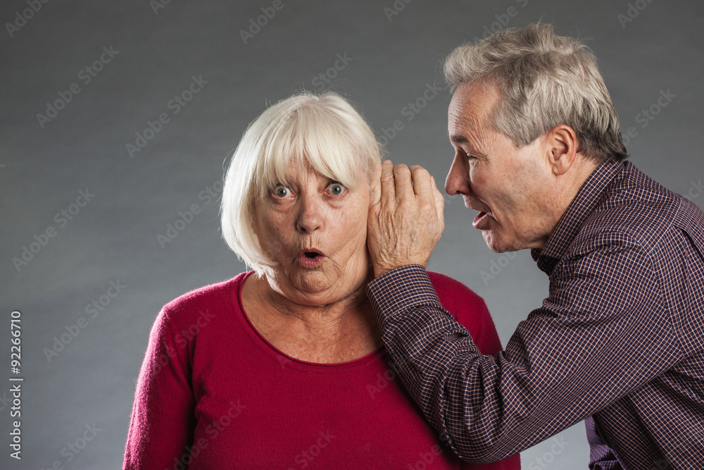 Samolepka Älterer Mann flüstert Frau Geheimnis ins Ohr