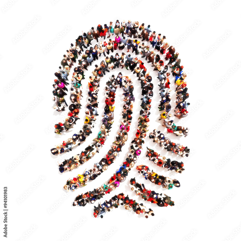 Samolepka Large group pf people in the shape of a fingerprint on an isolated white background