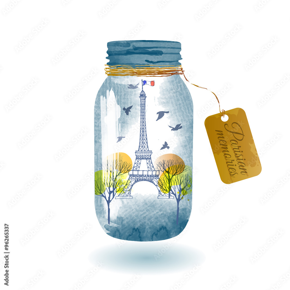 Samolepka watercolor Vector background of paris city