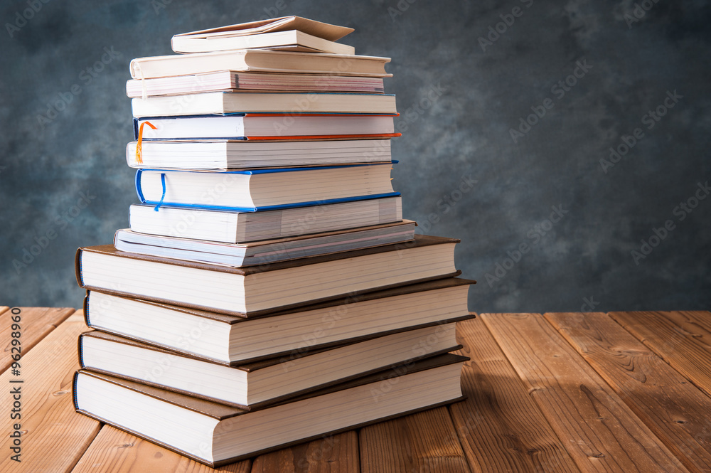読書 たくさんの本が積み重なっている様子