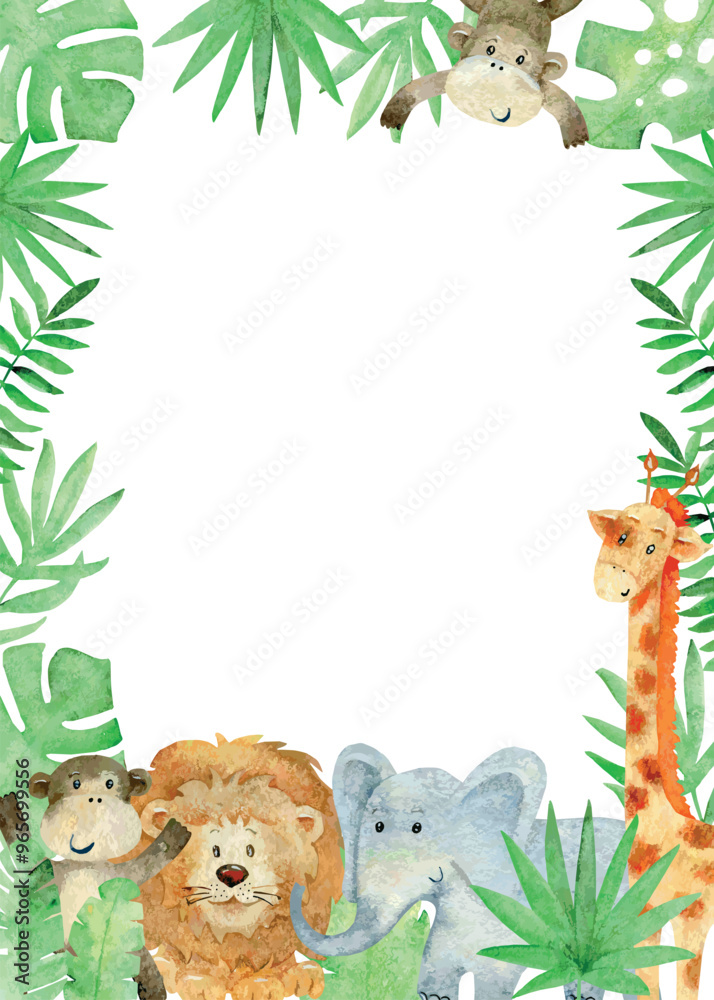 Samolepka Vector Baby shower card. Watercolor safari card with animals.