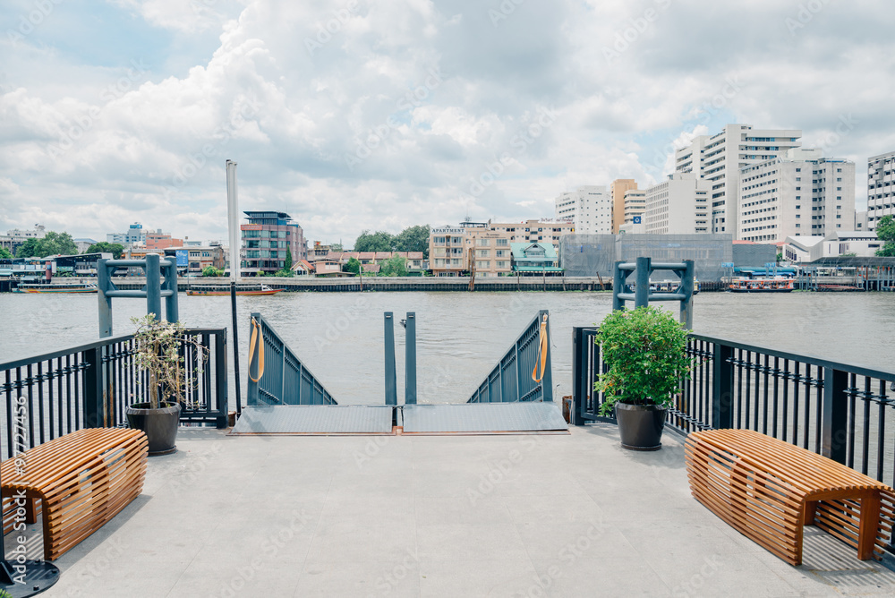 Samolepka Landscape of Maharat Pier Bangkok, Entrance to the port.