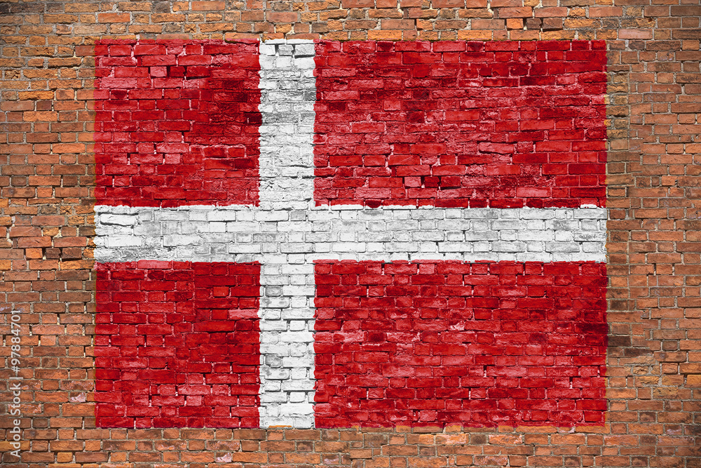 Samolepka Flag of Denmark painted on brick wall