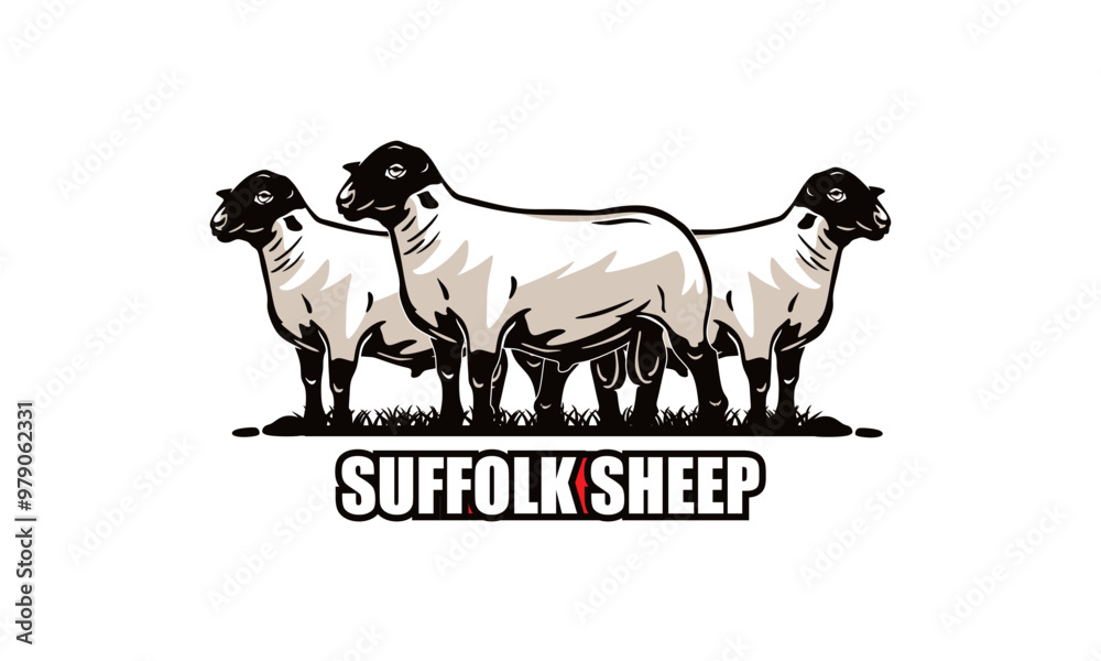 Samolepka big and healthy suffolk sheep standing, silhouette of strong ram vector illustra