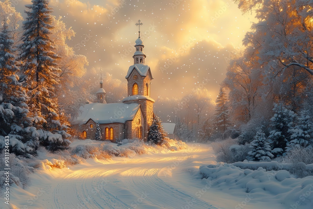 Obraz na plátně enchanting digital painting of a snowcovered church in a winter wonderland soft