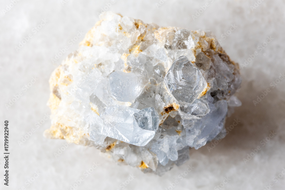 Fotografie sample of rough celestine rock on white marble