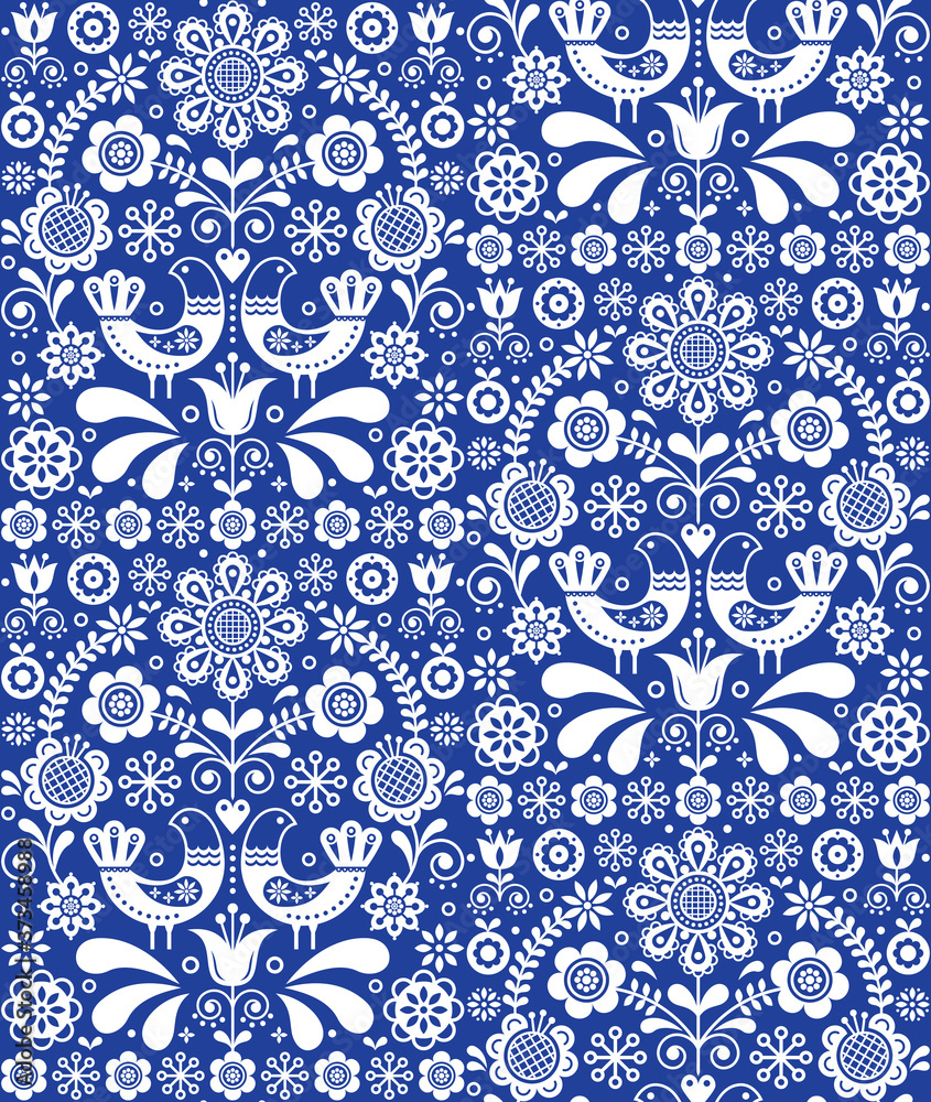 Fotografie Scandinavian seamless folk art vector pattern, floral repetitive background with