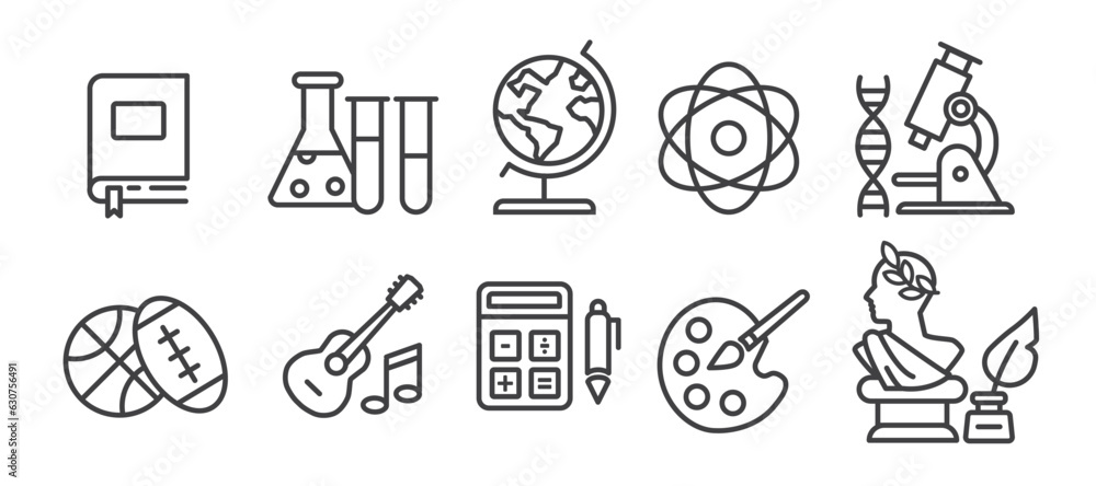 Fotografie school subjects - thin line icon collection on white background - vector illustr