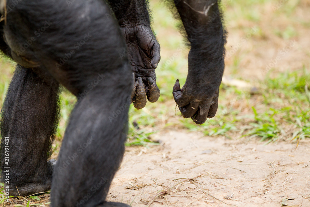 Fotografie Scimmia primate Bonobo Pan Paniscus nella riserva in Repubblica Democratica del