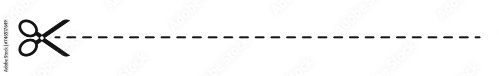 Fotografie Scissors cutting paper cut out line border illustration vector