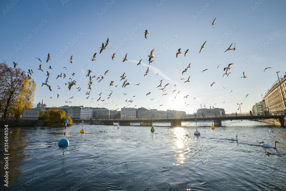 Fotografie Seagulls in Geneva, Switzerland