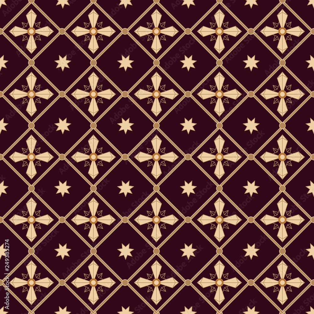 Obraz na plátně Seamless pattern Golden crosses and stars in diamonds. Vector