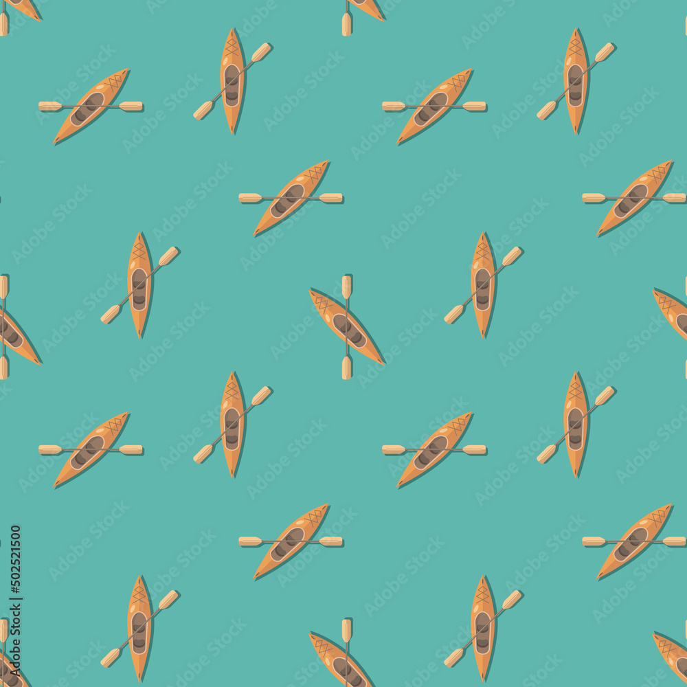 Fotografie Seamless pattern with kayak boats on turquoise background